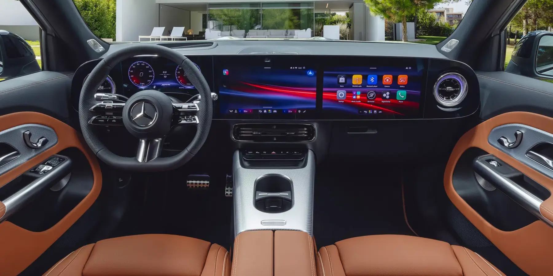 H Mercedes επιβεβαίωσε ότι η GLB θα διαθέτει προαιρετική οθόνη MBUX Superscreen. Η διάταξη αναμένεται να συνδυάζει έναν ψηφιακό πίνακα οργάνων 10,25 ιντσών με μια κεντρική οθόνη ψυχαγωγίας 14 ιντσών και μια αντίστοιχη οθόνη επιβατών 14 ιντσών.