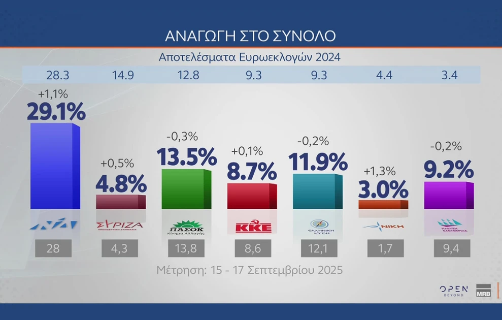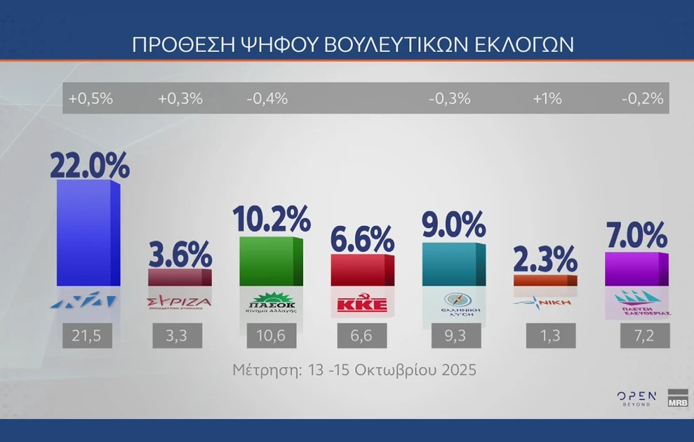 Η MRB πραγματοποίησε δημοσκόπηση για το OPEN, καταγράφοντας τη γνώμη των πολιτών για το πολιτικό σκηνικό.
