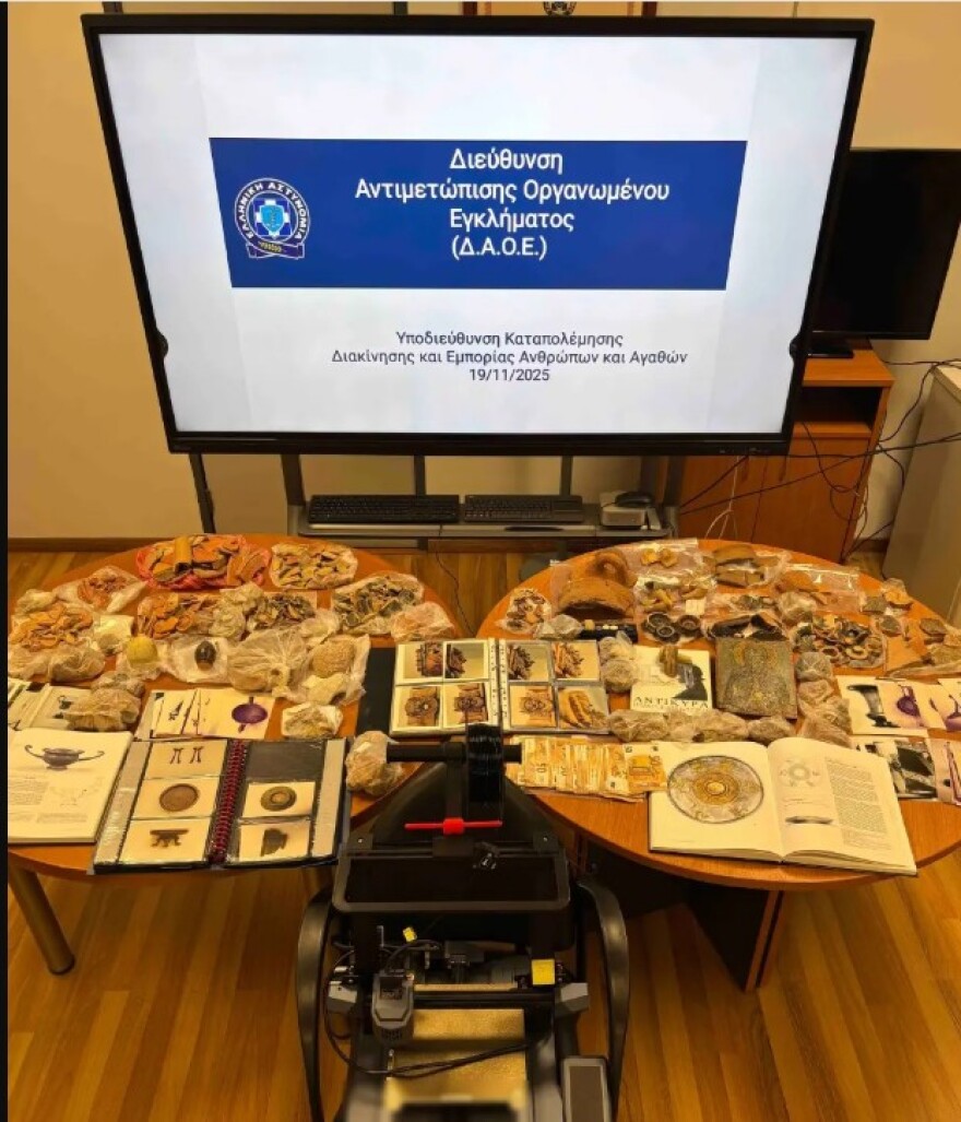 Στην Ελλάδα, αστυνομικοί της Υποδιεύθυνσης Καταπολέμησης Διακίνησης και Εμπορίας Ανθρώπων και Αγαθών της Διεύθυνσης Αντιμετώπισης Οργανωμένου Εγκλήματος συνέλαβαν έναν άνδρα, ο οποίος είχε στην κατοχή του αρχαία αντικείμενα και θρησκευτικές εικόνες.