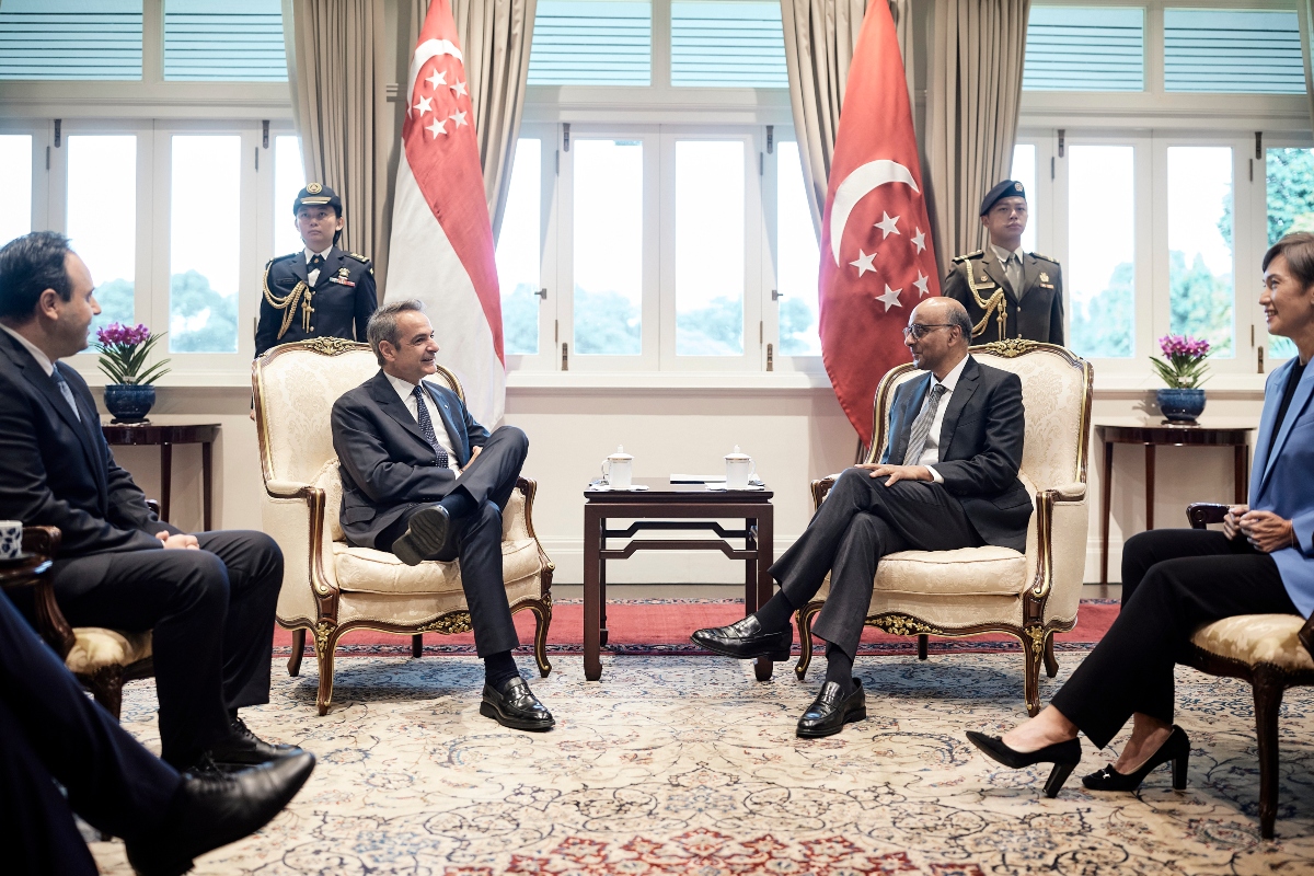 Ο πρωθυπουργός Κυριάκος Μητσοτάκης συναντήθηκε το πρωί με τον ομόλογό του της Σιγκαπούρης, Lawrence Wong, ενώ έγινε δεκτός από τον Πρόεδρο της Δημοκρατίας Tharman Shanmugaratnam, στο κυβερνητικό συγκρότημα Istana στη Σιγκαπούρη.