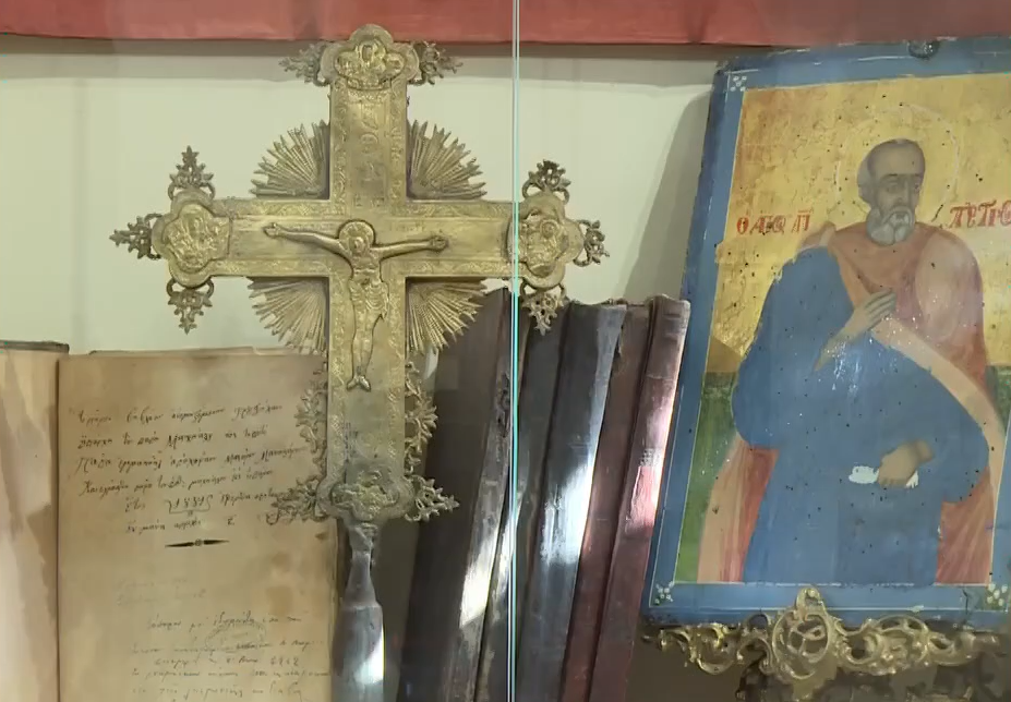 Σύμφωνα με τον ίδιο, εξάλλου, έχουν διατηρηθεί κειμήλια από εκείνη την εποχή: «Πολλά έχουν διασωθεί, είναι τα στέφανα – βασιλικές κορώνες – το παλαίτυπο Ευαγγέλιο του 1832 τυπωμένο στη Βενετία, το αρχαίο δικσοπότηρο με το κοχλιάριο, ο πολυέλαιος με κεριά. Όλα αυτά εκτίθενται στην κεντρική εκκλησία του χωριού, του Αγίου Δημητρίου, στο Ενοριακό Πνευματικό Κέντρο όπου έχουμε διαμορφώσει τον τελευταίο χρόνο ένα κειμηλιοφυλάκιο και μπορεί κανείς να τα δει σε προθήκες».
