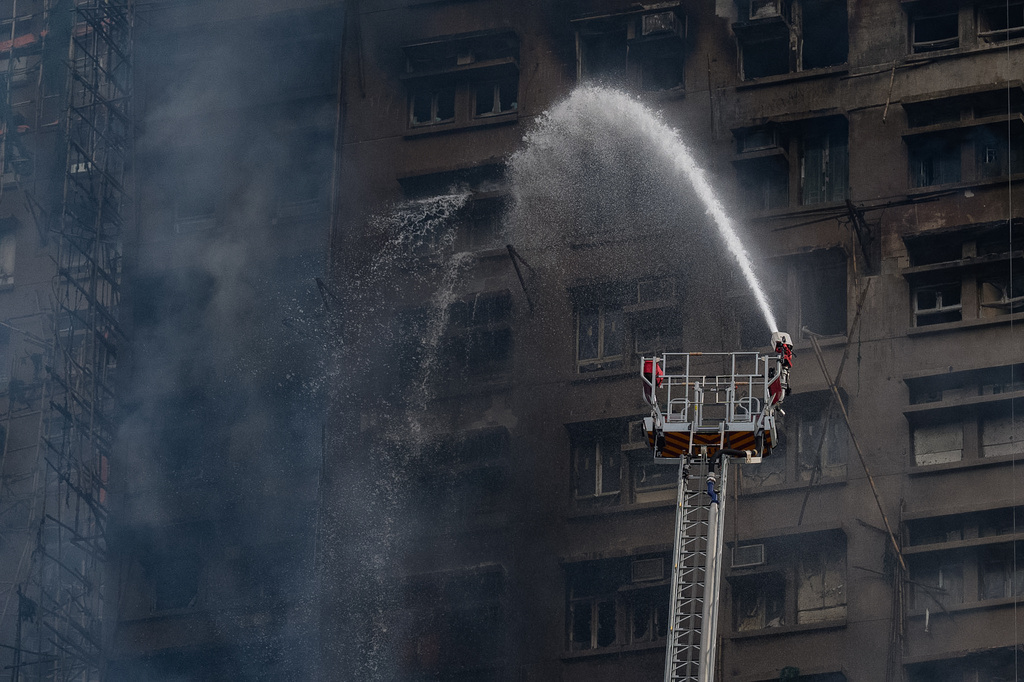 Πυκνός καπνός εξακολουθεί να υψώνεται από το συγκρότημα Γουάνγκ Φουκ Κορτ στην περιοχή Τάι Πο, ένα βόρειο προάστιο κοντά στα σύνορα με την ηπειρωτική χώρα. Η πυρκαγιά που ξεκίνησε το απόγευμα της Τετάρτης είχε εξαπλωθεί σε επτά από τα οκτώ υψηλά κτίρια του συγκροτήματος και σε τέσσερις από τους πύργους η φωτιά έχει τεθεί υπό έλεγχο μέχρι το πρωί της Πέμπτης, ανέφεραν οι πυροσβεστικές υπηρεσίες της πόλης.