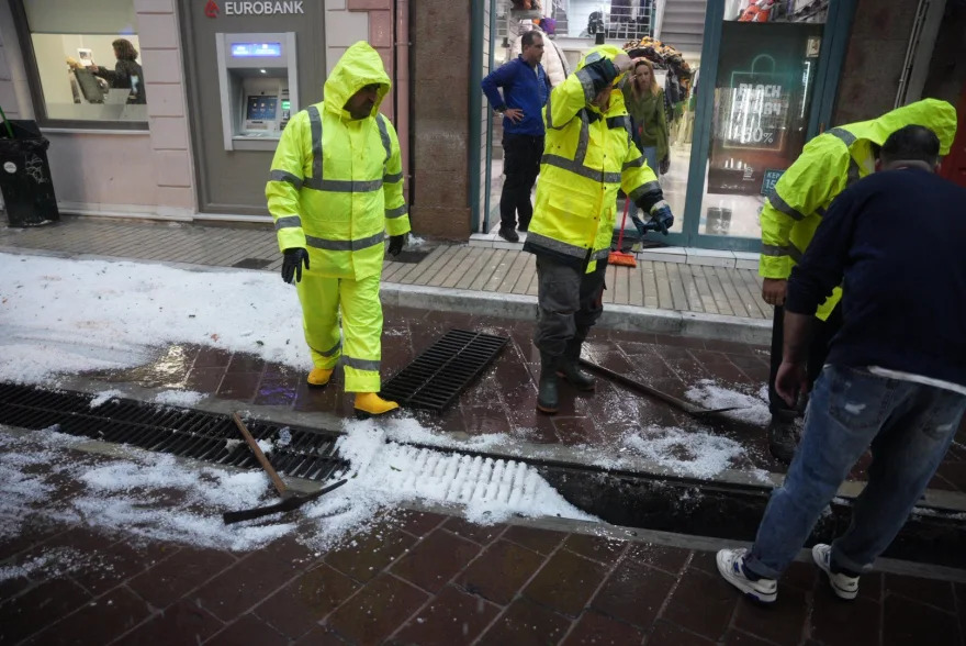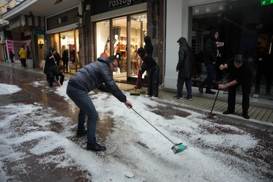 Η χαλαζόπτωση προκάλεσε πλημμύρες σε καταστήματα της οδού Ερμού, την ώρα που η κίνηση στην αγορά ήταν αυξημένη λόγω Black Friday. Πολλοί καταναλωτές δυσκολεύτηκαν στις μετακινήσεις τους, ενώ οι έμποροι έσπευσαν να προστατεύσουν τις επιχειρήσεις τους από τα νερά και το χαλάζι.