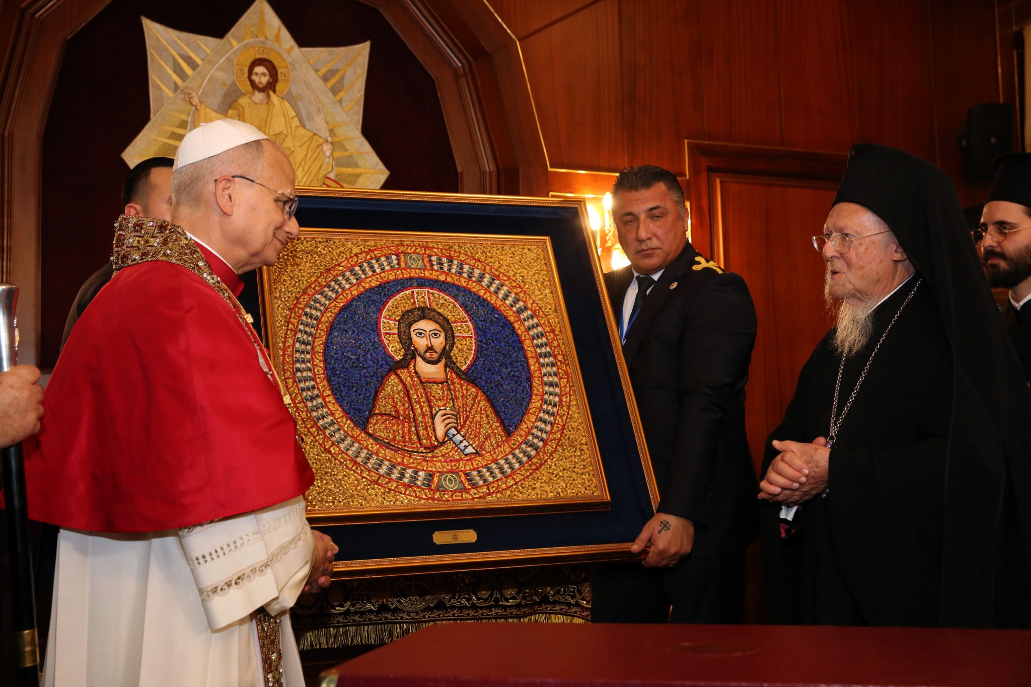 Ο Πάπας Λέων ο ΙΔ’ δώρισε στον Οικουμενικό Πατριάρχη Βαρθολομαίο ένα ψηφιδωτό με τον Παντοκράτορα.