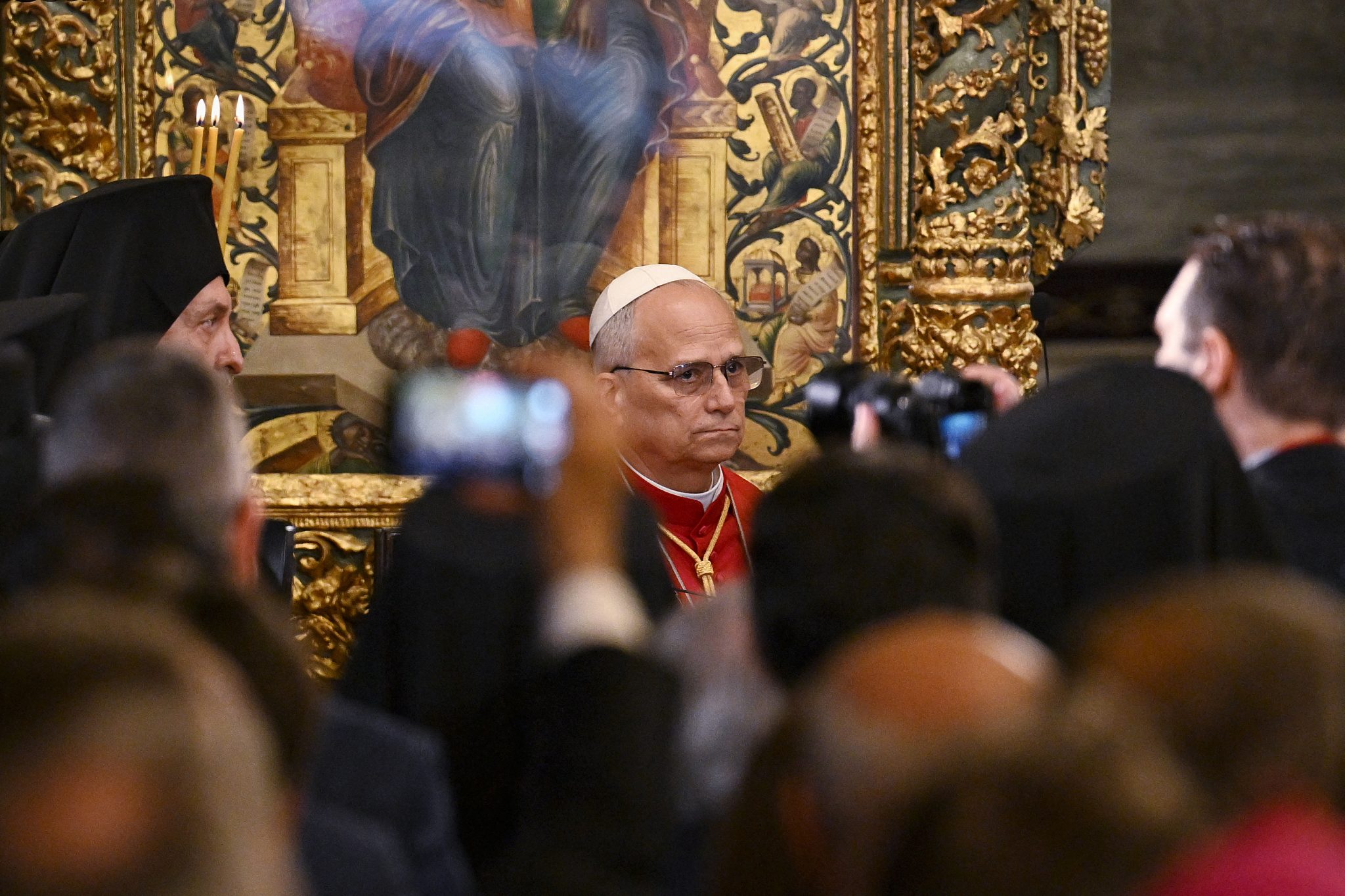 Ο Πάπας Λέων ΙΔ΄ επισκέπτεται το Τζαμί Σουλτάν Αχμέτ (Μπλε Τζαμί) στην Κωνσταντινούπολη (Photo by BERK OZKAN / AFP)Ο Πάπας Λέων ΙΔ΄ στέκεται ανάμεσα στον Πατριάρχη Μορ Ιγνάτιο Αφρέμ Β΄ (αριστερά) και τον Πατριάρχη Βαρθολομαίο Α΄ κατά την άφιξή του για ιδιωτική συνάντηση με θρησκευτικούς ηγέτες στην Συριακή Ορθόδοξη Εκκλησία Μορ Εφρέμ, στην Κωνσταντινούπολη (Photo by Andreas SOLARO / AFP)Ο Πάπας Λέων ΙΔ΄ (στο κέντρο) φτάνει για τη δοξολογία στην Πατριαρχική Εκκλησία του Αγίου Γεωργίου, στην Κωνσταντινούπολη (Photo by Ozan KOSE / AFP)