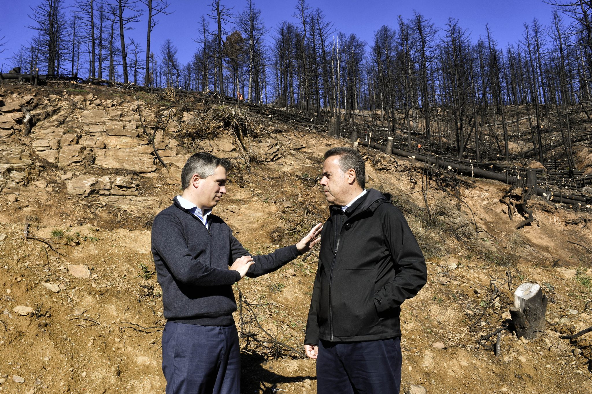 Ο Υπουργός Περιβάλλοντος και Ενέργειας, Σταύρος Παπασταύρου και ο υπουργός Υποδομών και Μεταφορών, Χρίστος Δήμας επισκέφθηκαν τον πυρόπληκτο Φενεό για να δουν από κοντά τα έργα που ολοκληρώθηκαν με ταχύτητα, ενόψει του χειμώνα. “Σήμερα παραδίνονται αντιδιαβρωτικά και αντιπλημμυρικά έργα για την προστασία των οικισμών και υποδομών και την ταχεία ανανέωση του φυσικού περιβάλλοντος“, δήλωσε ο . Παπασταύρου.