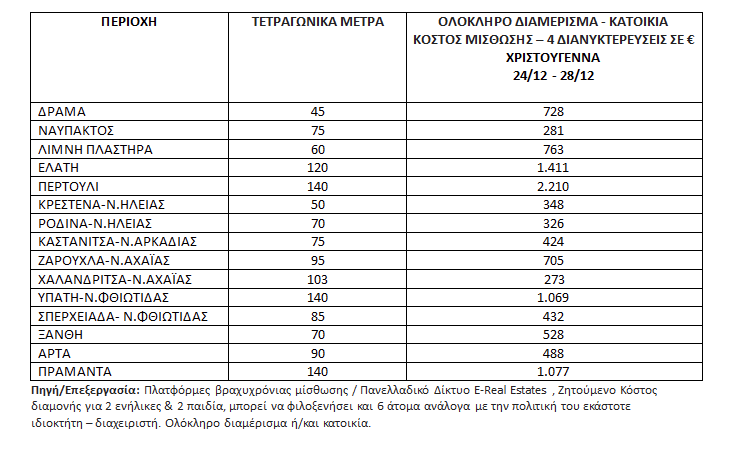 Αν αναζητάτε διαμονή για 4 διανυκτερεύσεις (24-28 Δεκεμβρίου 2025), δείτε τιμές και τετραγωνικά για πλήρη διαμερίσματα σε προορισμούς που συνδυάζουν φυσική ομορφιά, αυθεντικότητα και προσιτές τιμές: