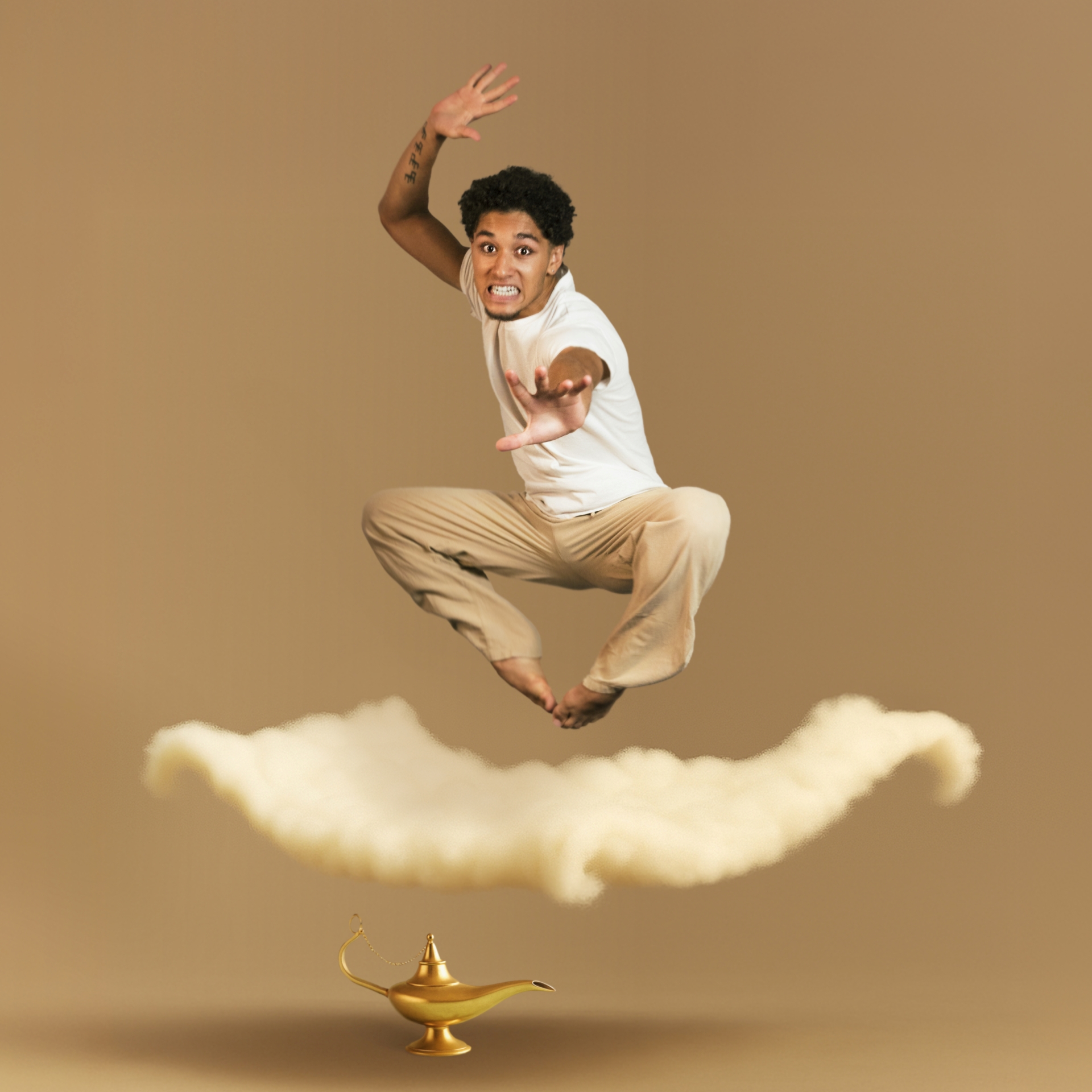 Ο Αλαντίν, η Ναραμίν, το Τζίνι, ο Σουλτάνος, η Σίρα η Τίγρη και ο πιστός φίλος Κίκο μάς παρασύρουν σε μια ιστορία μαγείας, ρυθμού και συγκίνησης. Ένα μελωδικό και οπτικά εντυπωσιακό μιούζικαλ που μεταμορφώνει τη σκηνή του Μεγάρου Μουσικής Αθηνών σε έναν φωτεινό κόσμο γεμάτο χρώμα και μουσική.
