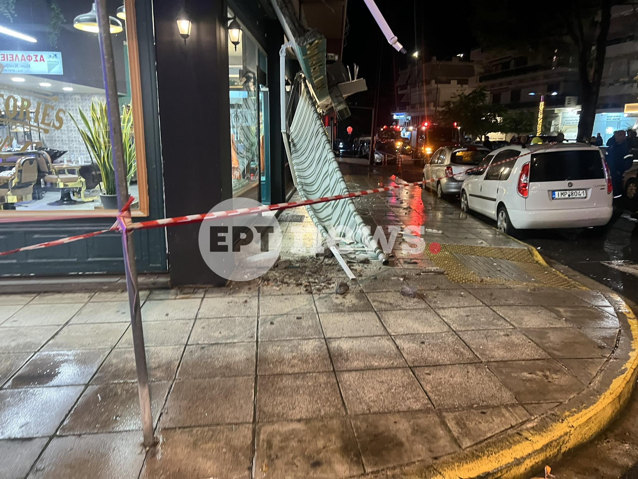 Μεγάλα κομμάτια τσιμέντου κατέληξαν στο πεζοδρόμιο, ενώ σύμφωνα με πληροφορίες λίγο έλειψε να πέσει και μονάδα κλιματιστικού, γεγονός που θα μπορούσε να έχει ακόμα σοβαρότερες συνέπειες.