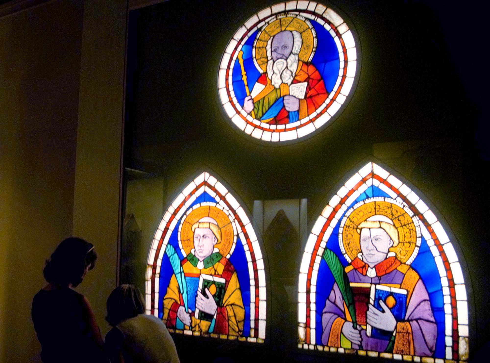 Επισκέπτες παρατηρούν τα βιτρό του Τζότο (Giotto) από το 1305 στη Βασιλική Σάντα Κρότσε στη Φλωρεντία, όπου βρίσκεται και ο τάφος του Νικολό Μακιαβέλι. (AP Photo/Fabrizio Giovannozzi)