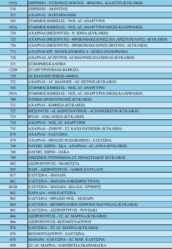 Ειδικότερα σύμφωνα με ανακοίνωση του ΟΑΣΑ κανονικά θα κινηθούν οι ακόλουθες γραμμές: