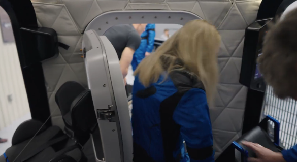 Η κάψουλα New Shepard προσαρμόστηκε ειδικά για εκείνη, με σανίδα μεταφοράς και ανελκυστήρα, ώστε να μπορεί να μετακινείται εύκολα από το αναπηρικό της αμαξίδιο στο κάθισμά της.