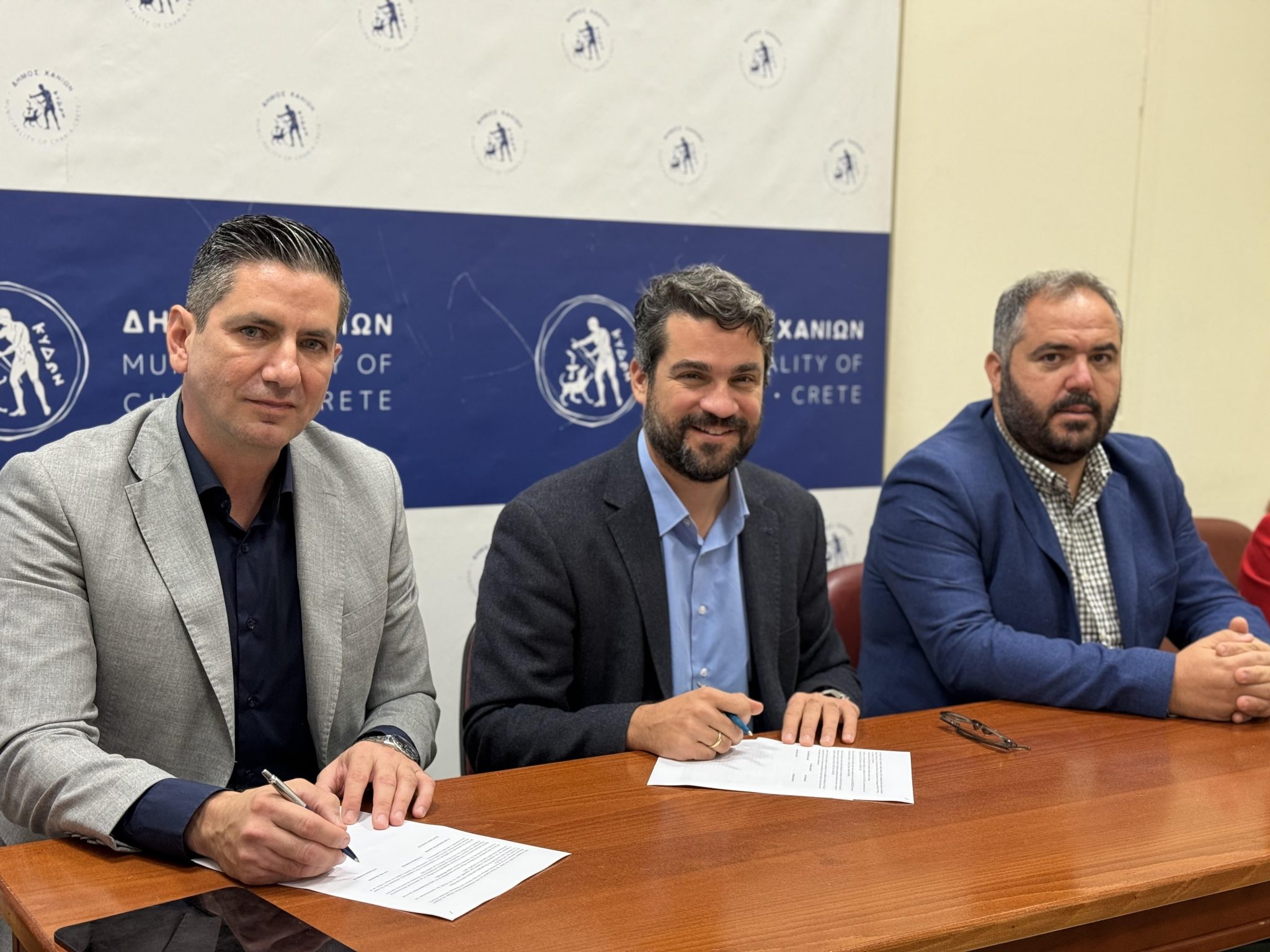 Τη σύμβαση για τη δημιουργία ενός σύγχρονου Κέντρου Ελέγχου και την ενίσχυση κρίσιμων υποδομών για την αντιμετώπιση κινδύνων, υπέγραψε σήμερα ο Δήμαρχος Χανίων, Παναγιώτης Σημανδηράκης με την OTE A.E., ύστερα από τη διεξαγωγή διεθνούς διαγωνισμού.