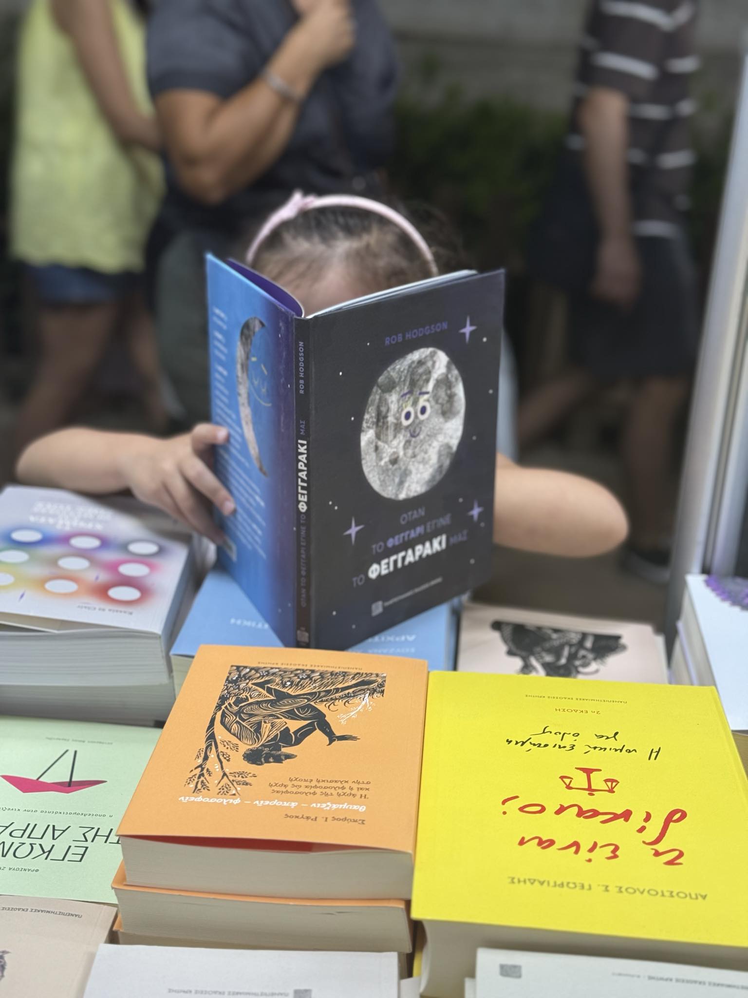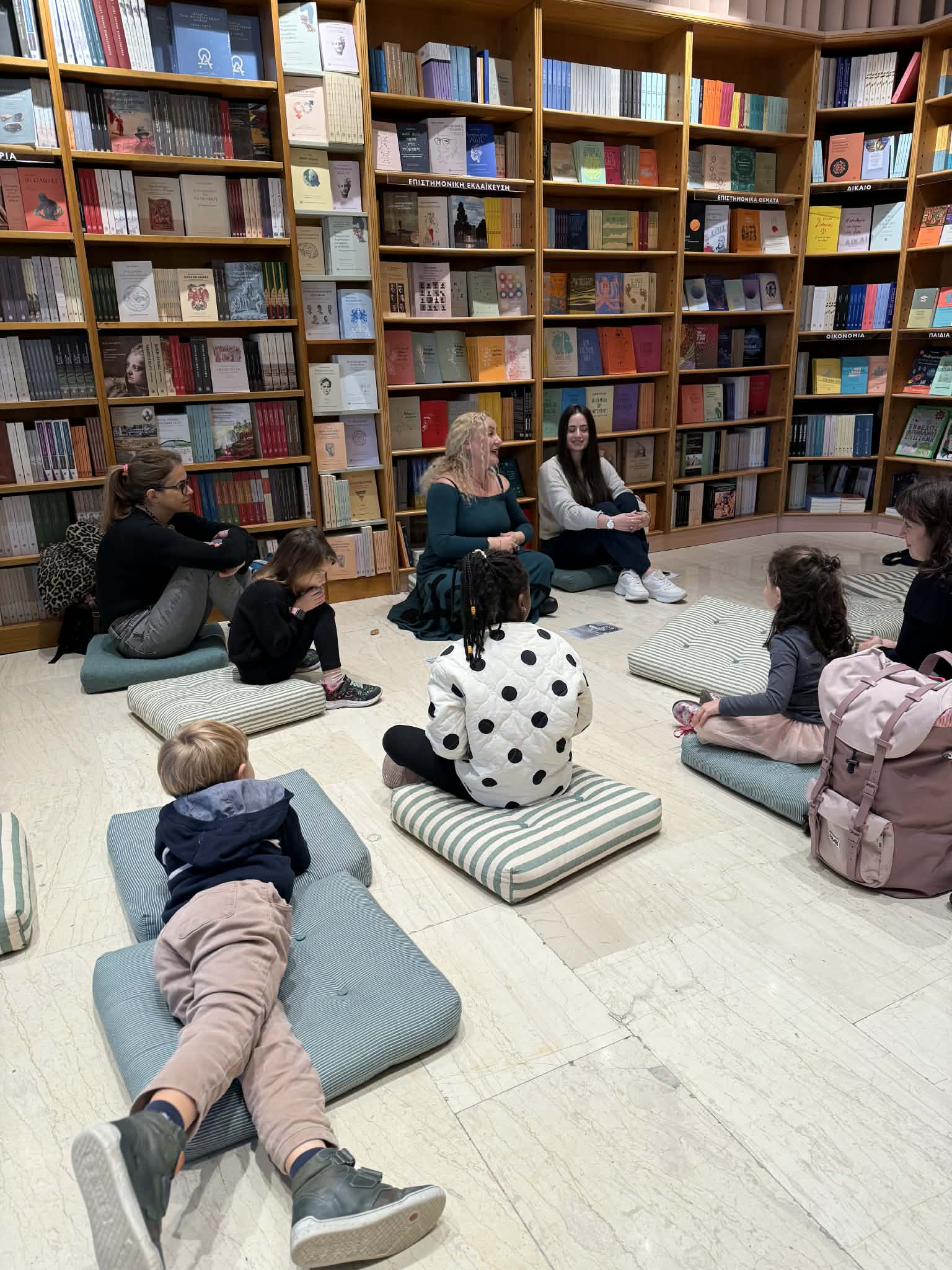 Στο φωτεινό βιβλιοπωλείο των εκδόσεων, μικροί και μεγάλοι γίναμε μια παρέα. Ακούσαμε το βουητό της Χρυσόμυγας, της μύγας και των μελισσών, είδαμε τον λύκο να πλησιάζει, γευτήκαμε τις τάρτες της μαμάς. Θαυμάσαμε τη χελώνα που τράβηξε τη βάρκα του Τονίνο μέχρι το νησί του μάγου και τον βάτραχο που έγινε πριγκίπισσα, γελάσαμε με τον μάγο που έπεσε στην παγίδα, δοκιμάσαμε φράουλες και μαρούλια. Και, ανάμεσα σε όλα αυτά, μάθαμε τι συνδέει τη μύγα με το ελικόπτερο, γιατί δεν ζαλιζόμαστε αφού η Γη γυρίζει, τι είναι κομήτης και πόσο μακριά μπορεί να φτάσει, κι άλλα τόσα…