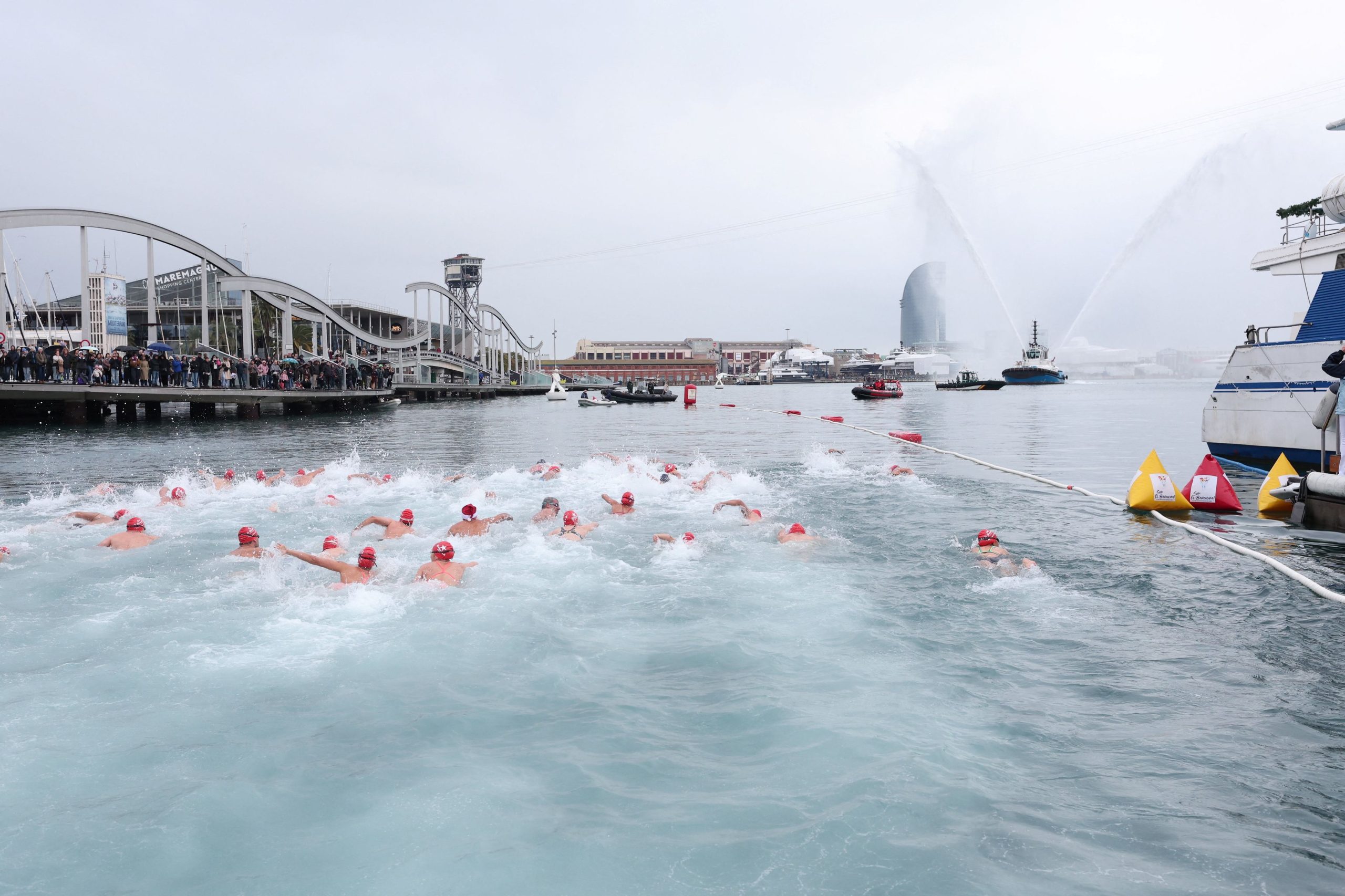 Βουτιά στο πνεύμα των Χριστουγέννων: Εκατοντάδες κολυμβητές στο παγωμένο λιμάνι της Βαρκελώνης