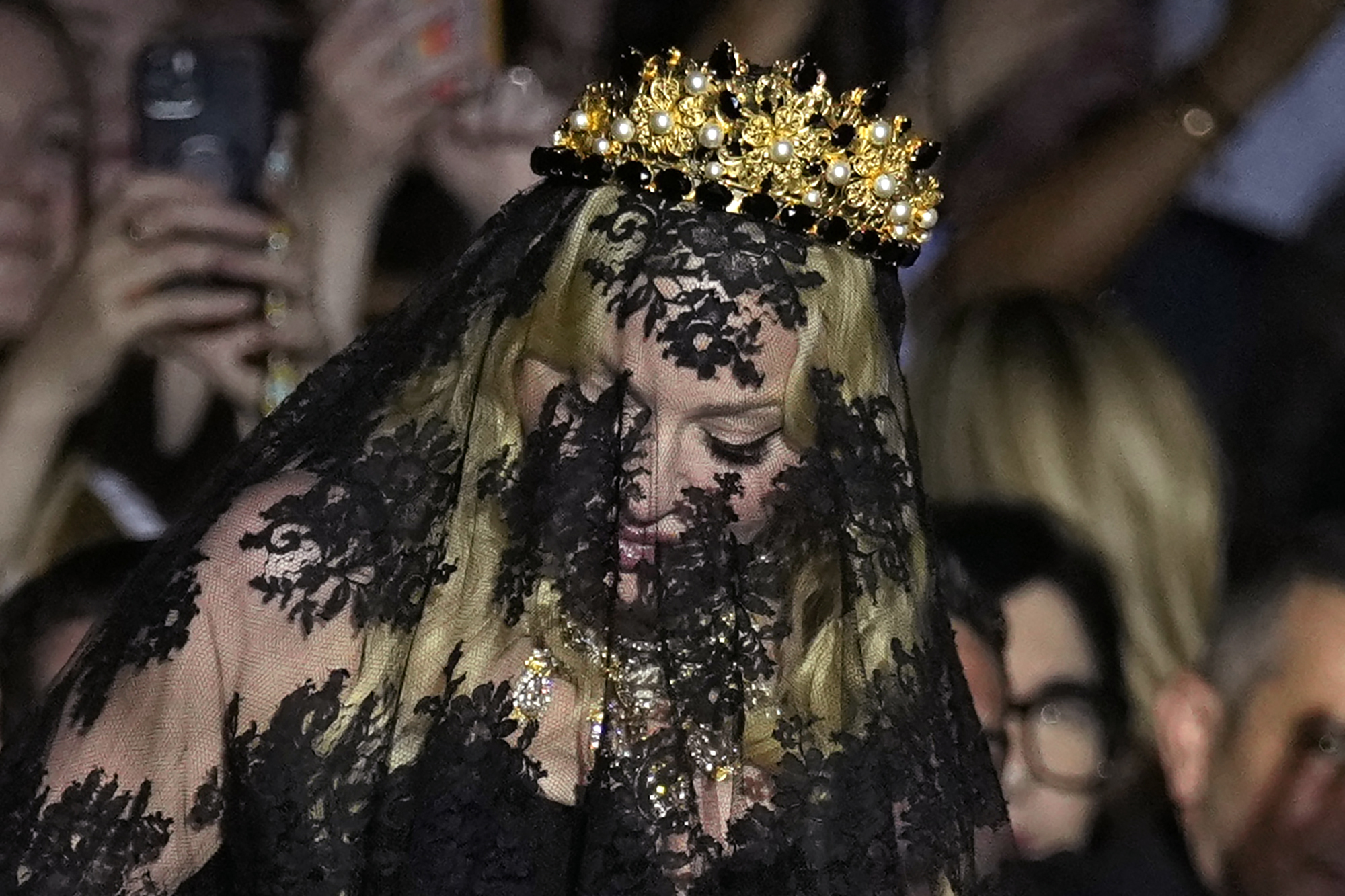 Εδώ η Μαντόνα το 2024, σε επίδειξη μόδας στην Ιταλία. (AP Photo/Antonio Calanni)