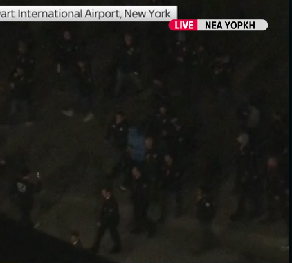 Σύμφωνα με τα πλάνα διεθνών δικτύων, δυνάμεις της εθνoφρουράς και της DEA είχαν περικλυκώσει το σημείο και με συνοδεία και χειροπέδες στα χέρια ο Μαδούρο βγήκε από το αεροσκάφος.