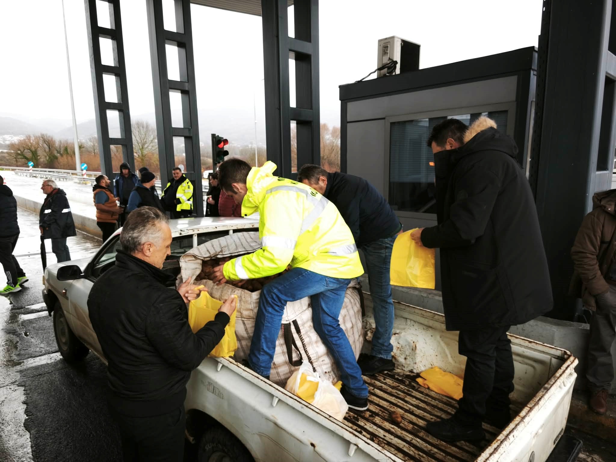 Αγρότες, κτηνοτρόφοι και μελισσοκόμοι σήκωσαν τις μπάρες στα διόδια Δροσοχωρίου Ιωαννίνων. Από τις 13:00 έως τις 15:00 προσέφεραν πατάτες, γάλα και αυγά στους διερχόμενους οδηγούς, δίνοντας ταυτόχρονα δωρεάν διέλευση σε όλα τα οχήματα.