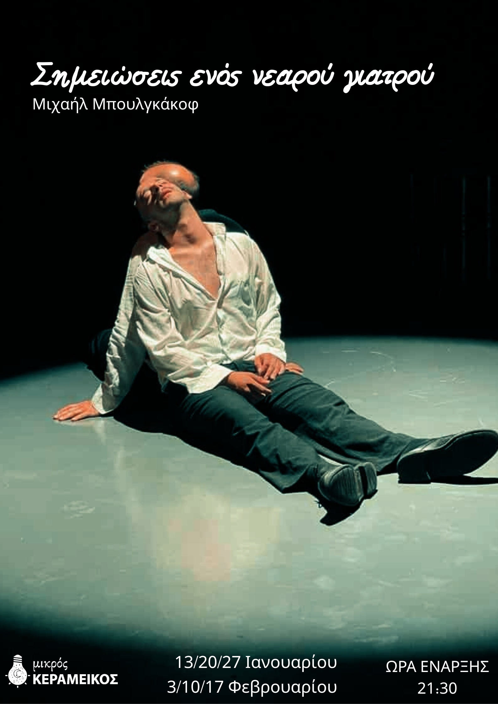 Στον παγωμένο ρωσικό χειμώνα των χρόνων της επανάστασης μάς μεταφέρει η νέα θεατρική δουλειά που φιλοξενείται στον Θέατρο Μικρός Κεραμεικός. Πρόκειται για τις Σημειώσεις ενός νεαρού γιατρού του Μιχαήλ Μπουλγκάκοφ, ένα έργο με έντονα αυτοβιογραφικά ίχνη, που φωτίζει την ανθρώπινη εμπειρία στα όρια της αντοχής.