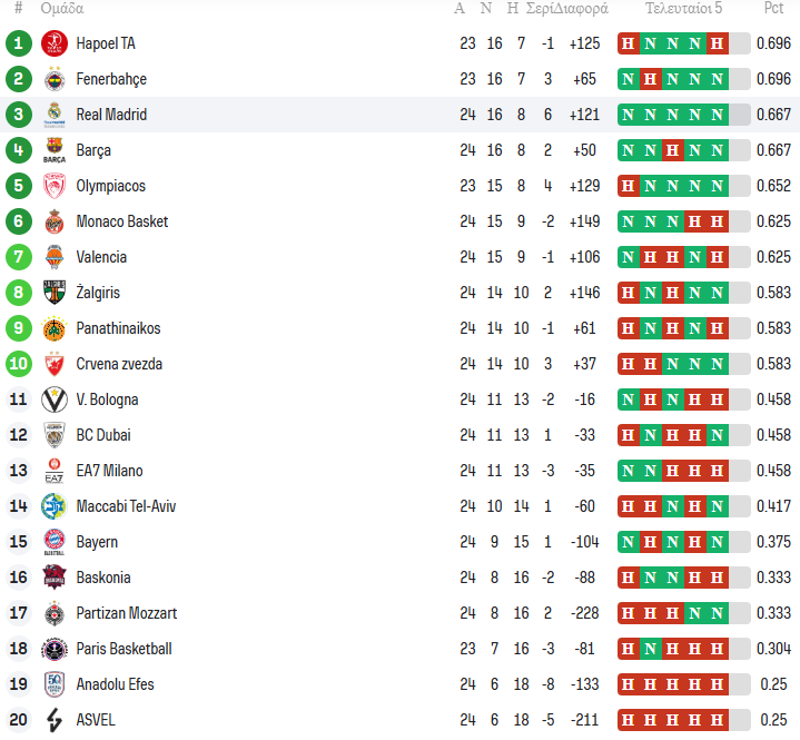 Η 24η αγωνιστική της EuroLeague ολοκληρώθηκε, με τη δεύτερη ημέρα να φέρνει κρίσιμα αποτελέσματα τόσο για τη μάχη της πρώτης τετράδας όσο και για τη διαμόρφωση της δεκάδας που οδηγεί στα playoffs.