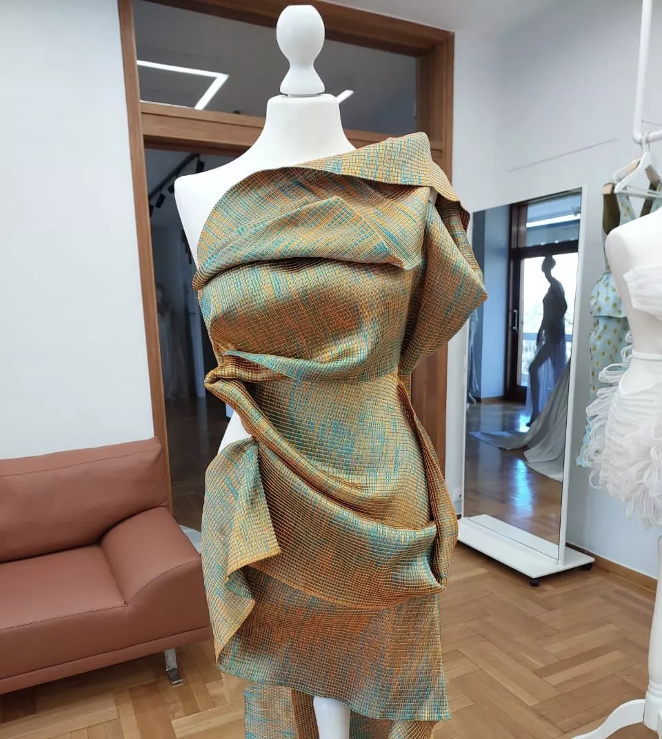 Στη συλλογή για την έκθεση «Νημάτων Ένδυμα», η ελληνική κλωστοϋφαντουργία γίνεται ξανά αφετηρία έμπνευσης και σύγχρονης αφήγησης και η Ντενίζ Ελευθερίου αποδεικνύει πως η παράδοση μπορεί να μετατραπεί σε ζωντανή, σύγχρονη μόδα με διεθνή απήχηση.