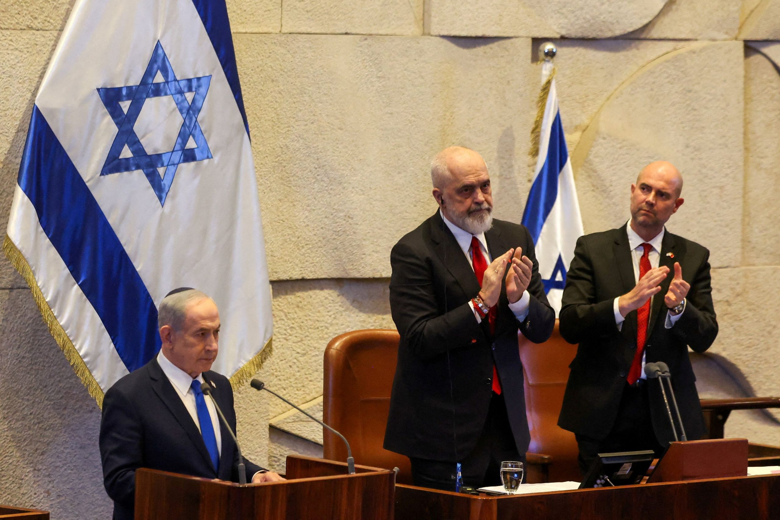 Στην Κνεσέτ της Ιερουσαλήμ μίλησε τη Δευτέρα (26.01.2026) ο πρωθυπουργός της Αλβανίας Έντι Ράμα, επαινώντας τον Μπέντζαμιν Νετανιάχου. Ο Ράμα δήλωσε ότι «τα γόνατά του τρέμουν δίπλα του», χαρακτηρίζοντας τον Ισραηλινό πρωθυπουργό ως έναν από τους πέντε κορυφαίους ομιλητές παγκοσμίως.