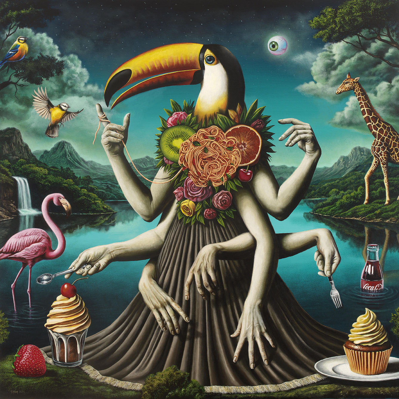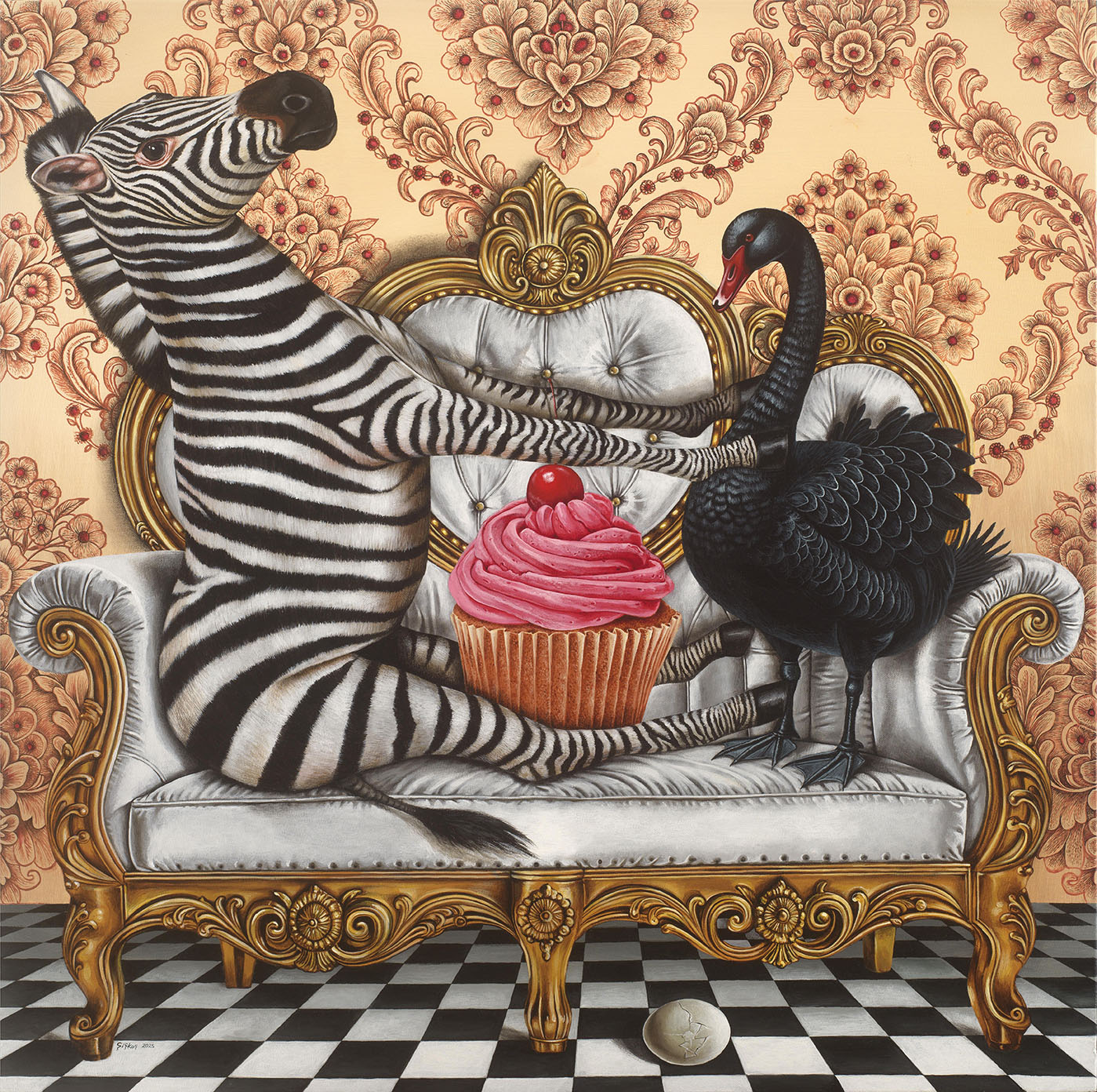 Στα έργα σας βλέπουμε ανθρώπους με γλυκίσματα, αλλά και στοιχεία που προκαλούν ένα ξάφνιασμα. Τι θέλετε να δείξετε μέσα από αυτή την αντίθεση;