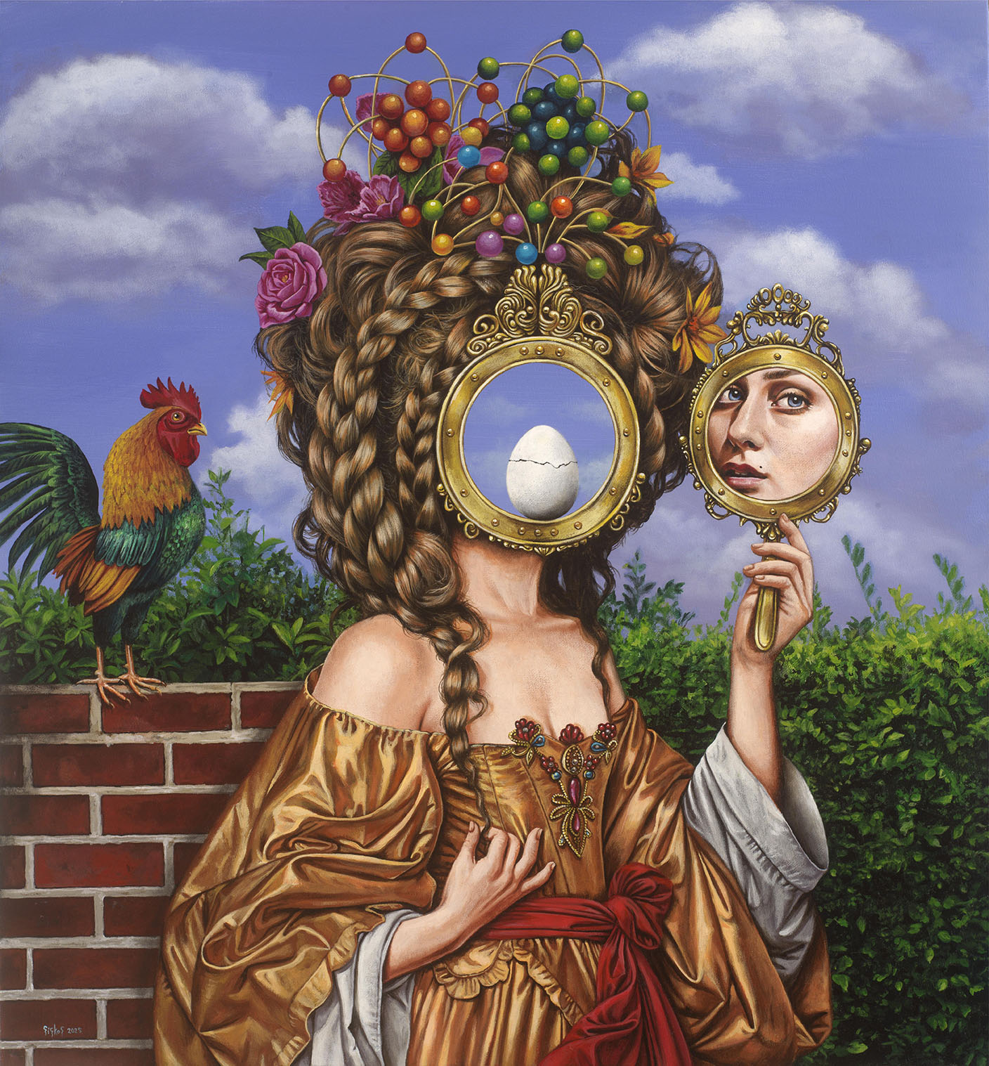 Στα έργα του, ανθρώπινες μορφές εμφανίζονται να κρατούν γλυκίσματα, ενώ γύρω τους κινούνται έντομα, ζώα και παράδοξα στοιχεία που διαταράσσουν την οπτική ισορροπία. Το γλυκό συνυπάρχει με το απειλητικό, το ελκυστικό με το ανοίκειο. Η απόλαυση δεν παρουσιάζεται αθώα, εμπεριέχει ένταση και εσωτερική ταραχή. Ο Σίσκος αξιοποιεί έναν σχολαστικό, σχεδόν εμμονικό ρεαλισμό που αντλεί από τη δυτική παράδοση της ζωγραφικής, εμπλουτισμένο με pop χρωματικές αναφορές, για να υπονομεύσει το κάλλος. Το «ωραίο» λειτουργεί ως δόλωμα για το βλέμμα: προσελκύει τον θεατή, μόνο και μόνο για να τον οδηγήσει σε μια εμπειρία όπου η λεπτομέρεια αποκαλύπτει ρωγμές, αποκλίσεις και υπόγειες απειλές. Οι μορφές του δεν προβάλλουν κατ’ ενώπιον για να επικοινωνήσουν. Είναι πρόσωπα που μοιάζουν να φορούν τη δική τους εικόνα όπως θα φορούσε κανείς μια μάσκα.