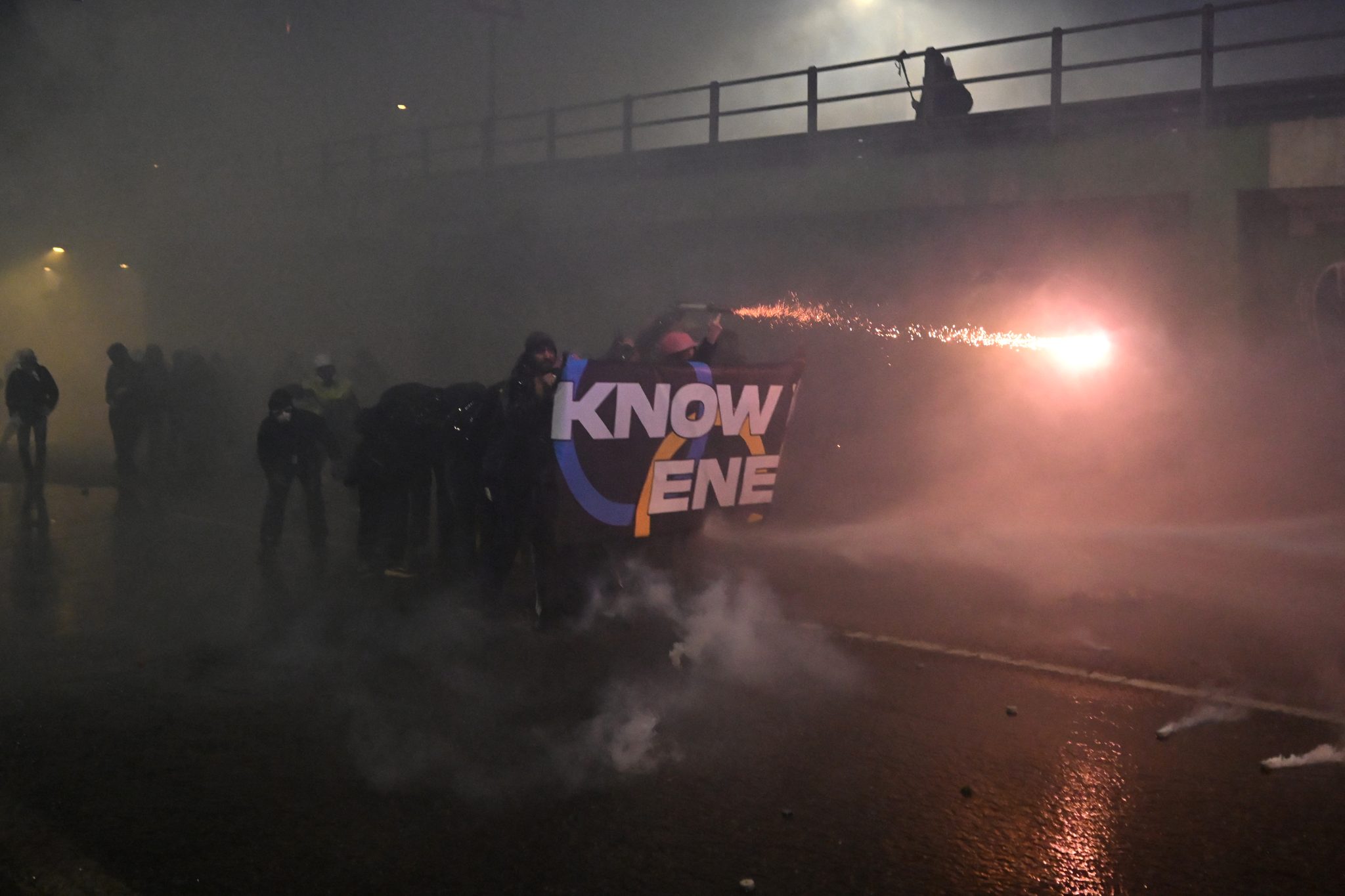 Η πλειοψηφία των συμμετεχόντων στην πορεία διαδήλωσε ειρηνικά. Ωστόσο, λίγο πριν από την ολοκλήρωσή της, άτομα με καλυμμένο το πρόσωπο άρχισαν να πετούν κροτίδες και καπνογόνα προς τους αστυνομικούς, οι οποίοι απάντησαν με γκλοπ, χρήση αντλιών νερού και δακρυγόνα. Έως τώρα έχουν πραγματοποιηθεί επτά προσαγωγές.