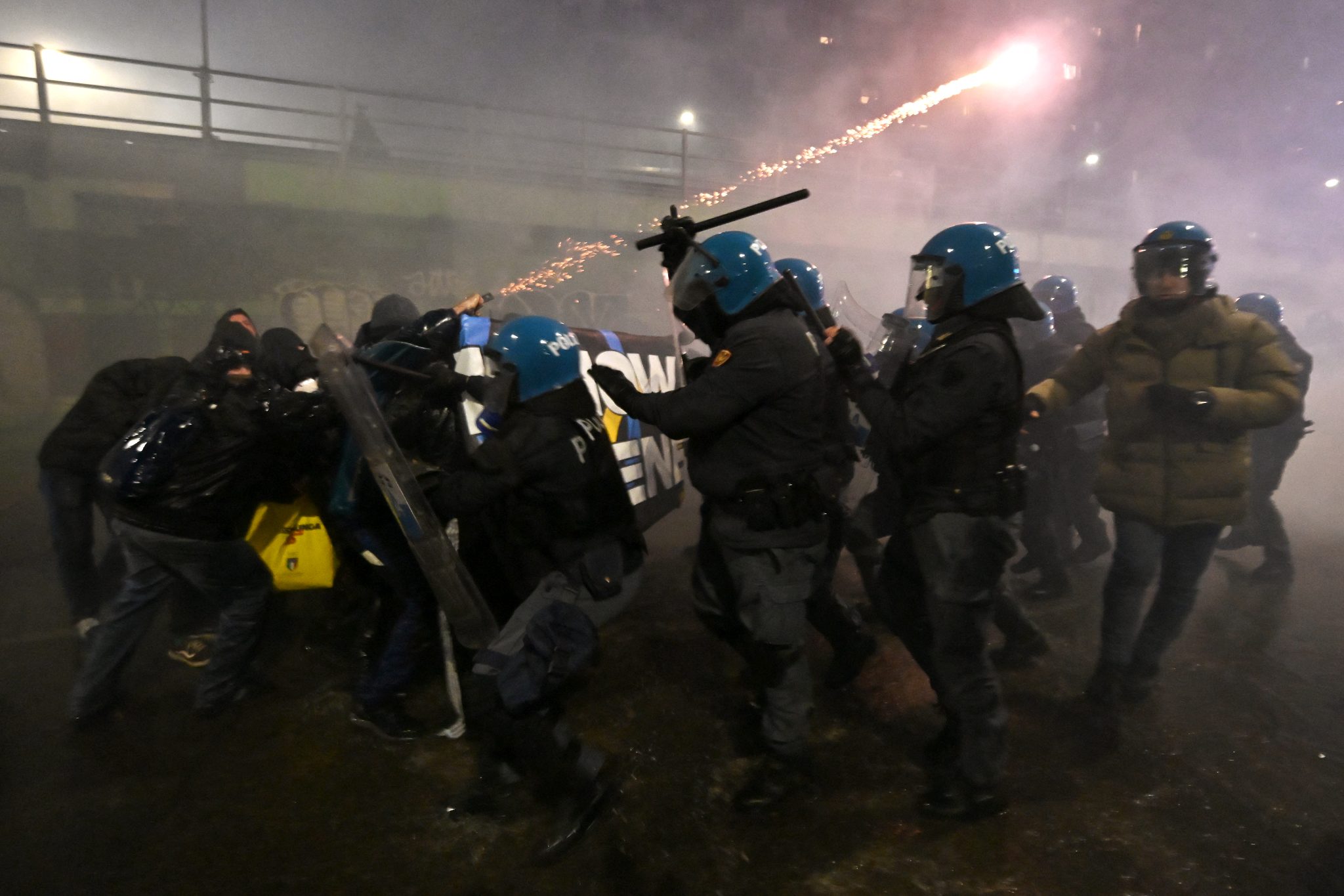 Σύμφωνα με τις μέχρι τώρα πληροφορίες, περίπου 5.000 νέοι του ανταγωνιστικού χώρου, μαζί με μέλη των αυτόνομων συνδικάτων βάσης, διαδήλωσαν κατά των Χειμερινών Ολυμπιακών Αγώνων Μιλάνο – Κορτίνα.