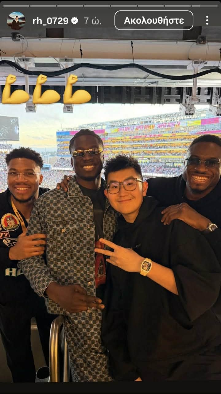 Ο Γιάννης Αντετοκούνμπο, τα αδέρφια του και ο Ρίτσαρντ Σιάο έδωσαν το παρών στο Super Bowl μαζί με τον φίλο τους Ρίτσαρντ Σιάο, απολαμβάνοντας τόσο τον αγώνα που έκρινε τον τίτλο, όσο και το φαντασμαγορικό halftime show που στήθηκε, με τον Bad Bunny και τη Lady Gaga.