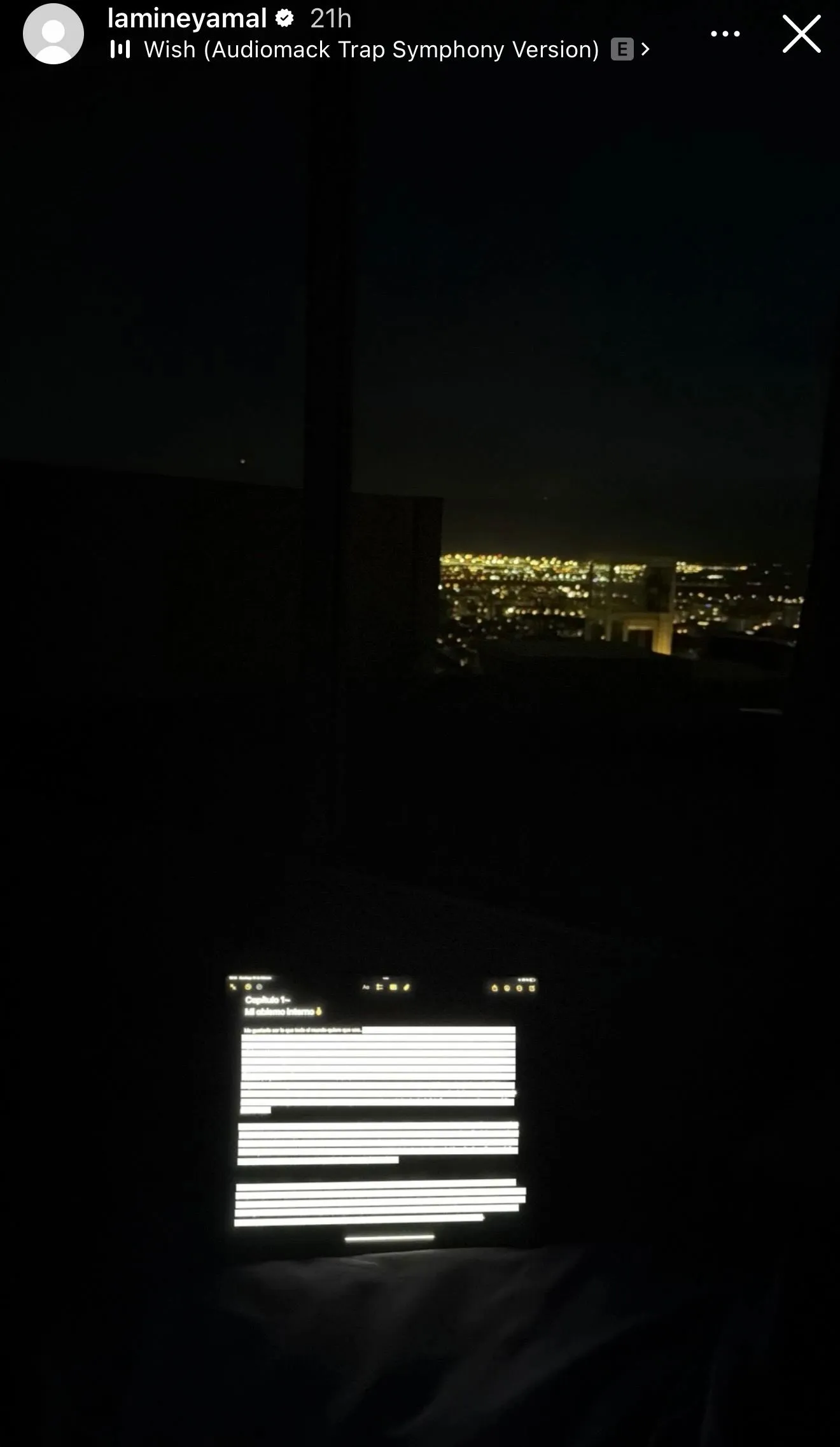 Ο Λαμίν Γιαμάλ κατάφερε ξανά να συγκεντρώσει τα βλέμματα, αυτή τη φορά όχι για όσα κάνει με την μπάλα στα πόδια, αλλά για ένα αινιγματικό story στα social media. Ο 17χρονος ποδοσφαιριστής της Μπαρτσελόνα δημοσίευσε μια φωτογραφία από σκοτεινό δωμάτιο, με φόντο τα φώτα της πόλης και στο επίκεντρο μια οθόνη υπολογιστή.