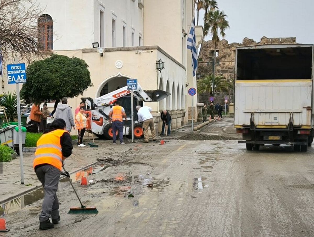 Πρωτόγνωρες εικόνες άφησε πίσω της η έντονη κακοκαιρία που έπληξε την Κω, με το παραλιακό μέτωπο να μετατρέπεται ένα με τη θάλασσα. Η ένταση των άνεμων προκάλεσαν σημαντικές υλικές ζημίες. Από το σημείο της Αστυνομίας στην Καμάρα έως το γεφύρι του Μπαρμπαγιάννη, ο παραλιακός δρόμος καλύφθηκε από νερά και φερτά υλικά, καθιστώντας αναγκαίο το κλείσιμο του προκειμένου να πραγματοποιηθούν εργασίες καθαρισμού και αποκατάστασης από τα μηχανήματα του Δήμου.