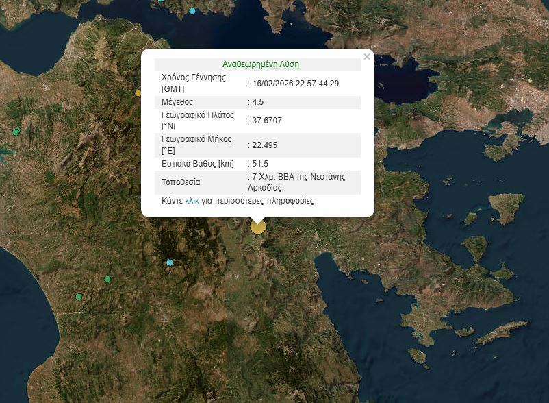 Σεισμική δόνηση 4,5 Ρίχτερ στην Αρκαδία – Αισθητός και στην Αττική
