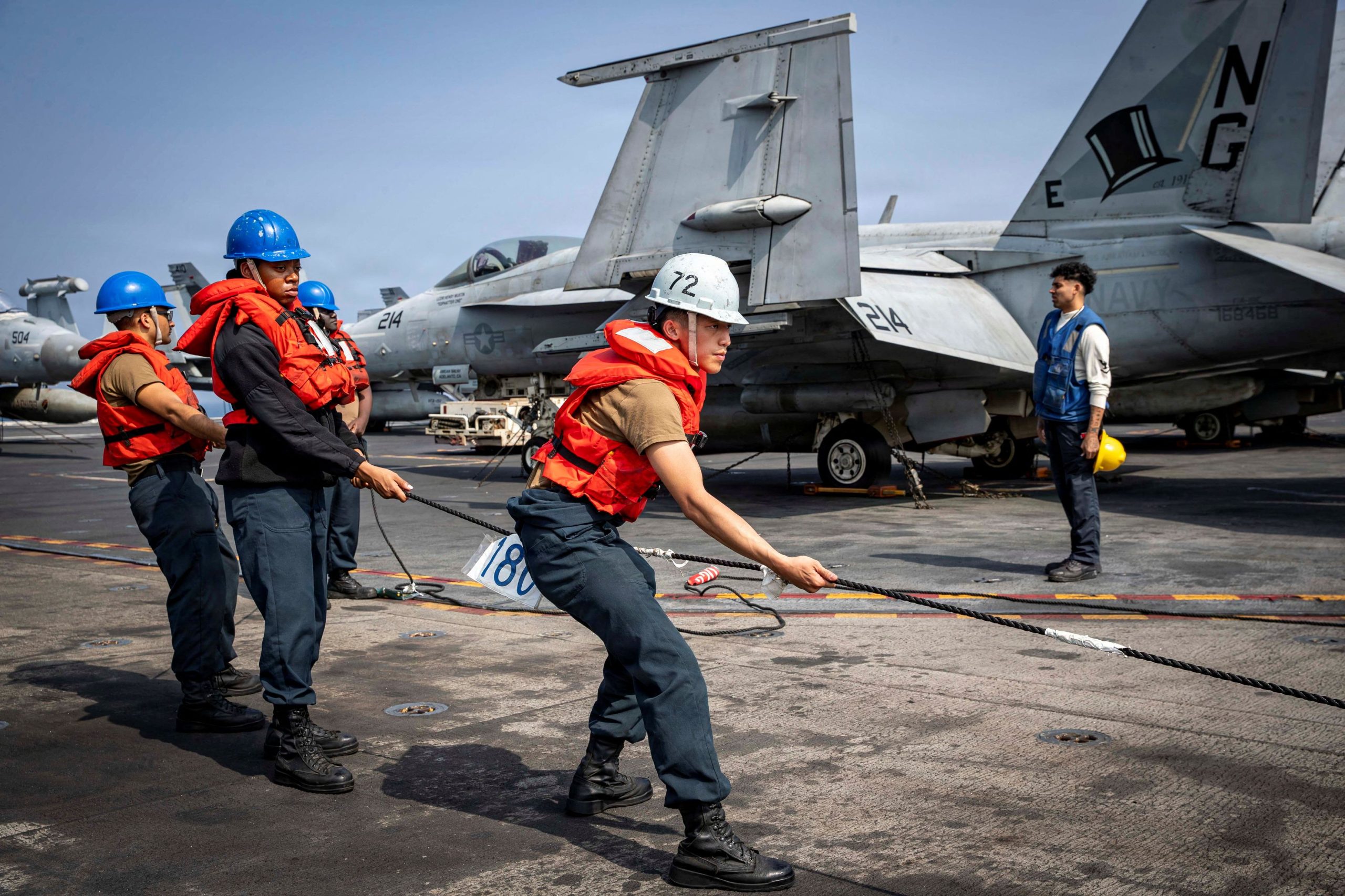 Οι ΗΠΑ έχουν αναπτύξει τουλάχιστον 13 πολεμικά πλοία στη Μέση Ανατολή, ανάμεσά τους το USS Abraham Lincoln, εννέα αντιτορπιλικά και τρεις φρεγάτες. Επιπλέον μονάδες κατευθύνονται προς την περιοχή, ενώ το USS Gerald R. Ford πλέει ήδη προς τον Κόλπο, συνοδευόμενο από τρία αντιτορπιλικά.