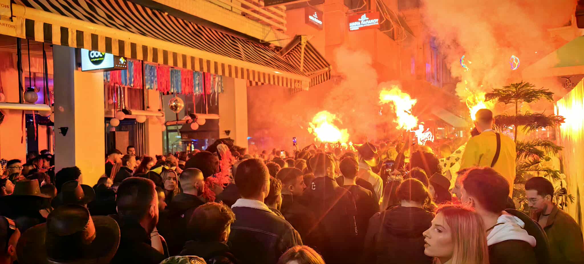 Οι νεότερες ηλικίες κατέκλυσαν τα στέκια του κέντρου, με τη μουσική να ακούγεται δυνατά και τα φώτα να δίνουν τον τόνο. Βεγγαλικά και καπνογόνα έκαναν την εμφάνισή τους, ενώ σε αρκετά καταστήματα που είχαν οργανώσει θεματικά πάρτι, ο κόσμος παρέμεινε μέχρι τα ξημερώματα.