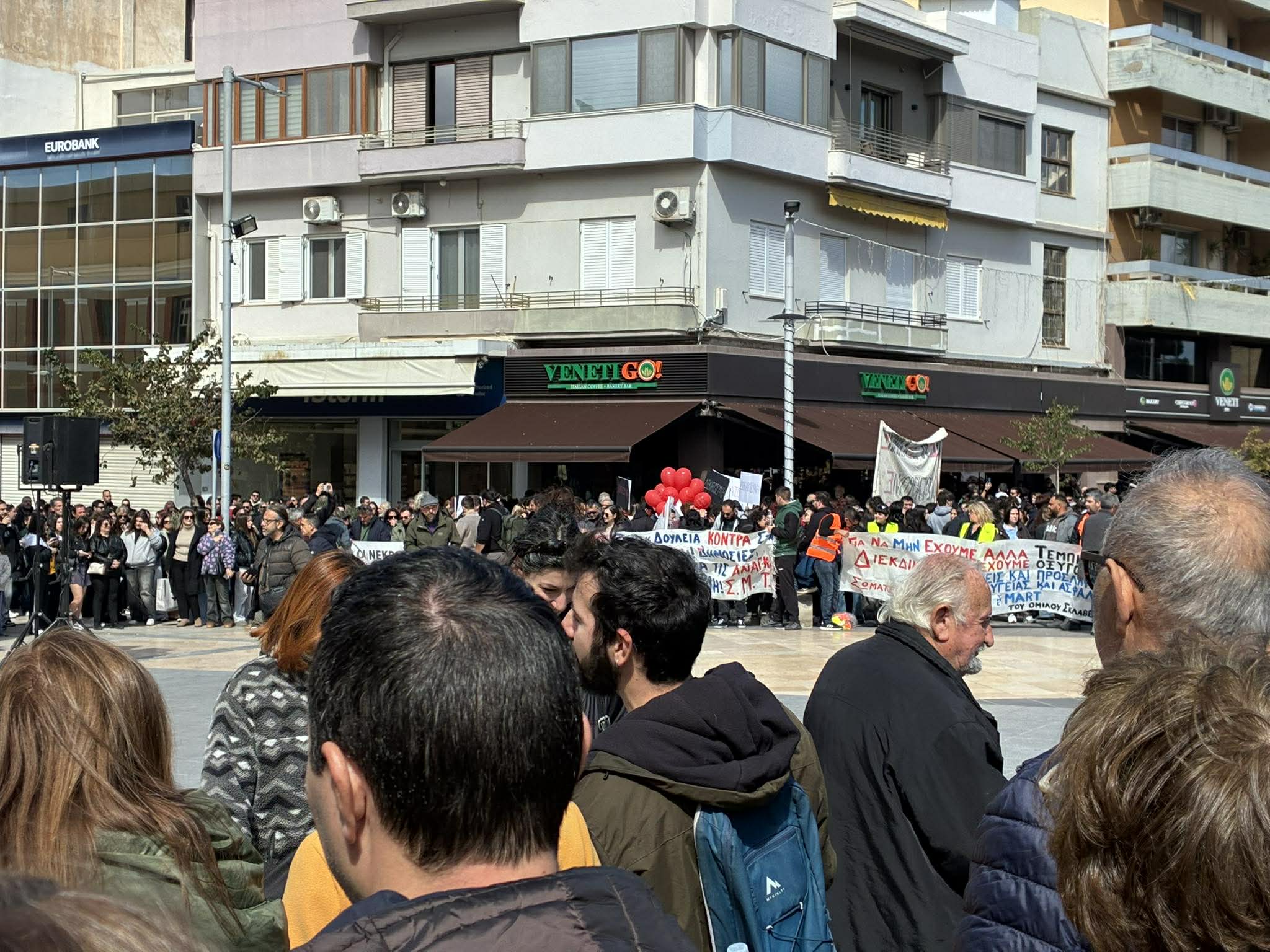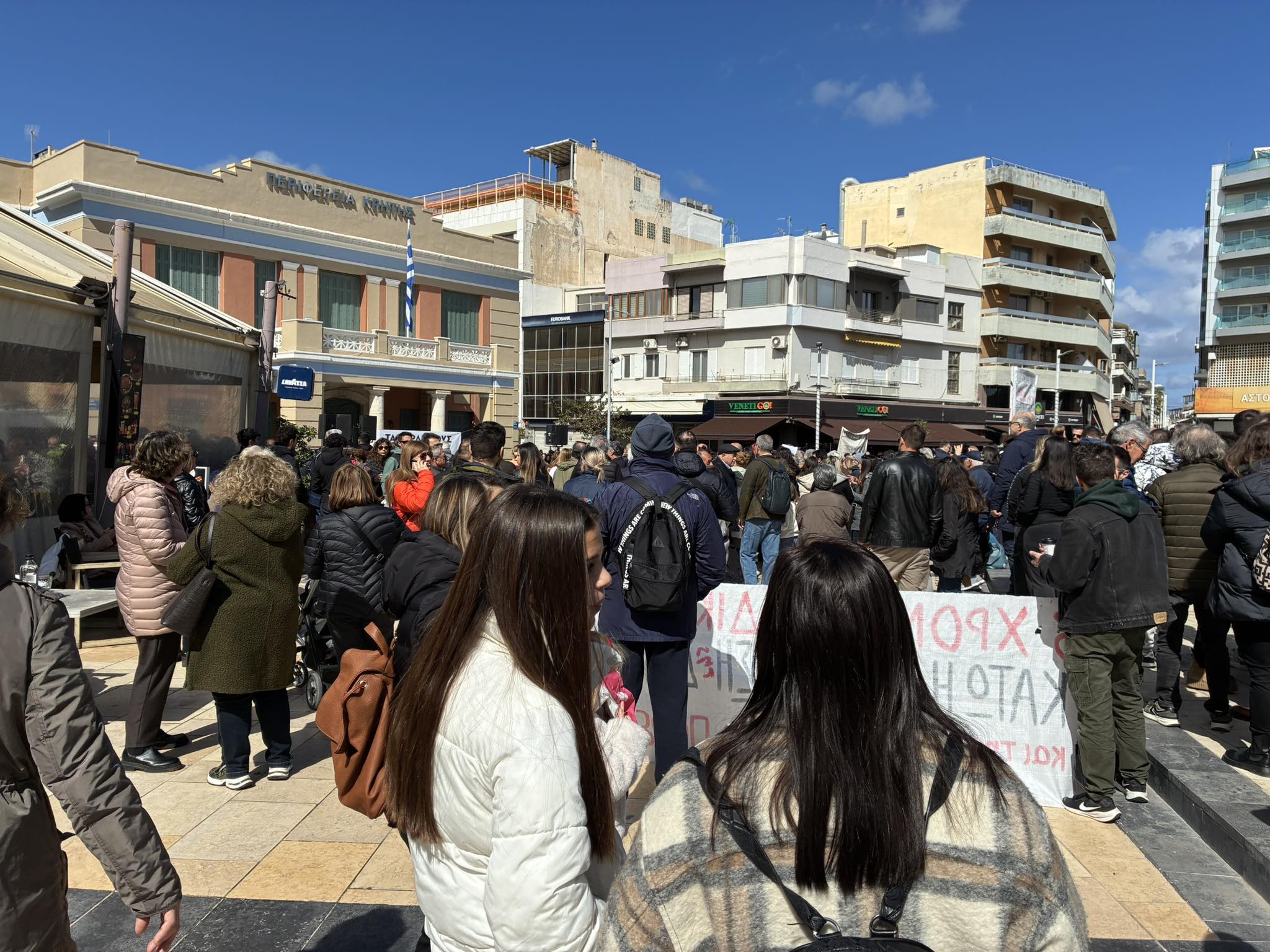 Τρία χρόνια από την τραγωδία με τους 57 νεκρούς στα Τέμπη και σωματεία, γονείς και φορείς, ενώνουν την φωνή του στο κέντρο του Ηρακλείου, στην πλατεία Ελευθερίας, με ένα κοινό αίτημα: Την απόδοση Δικαιοσύνης.