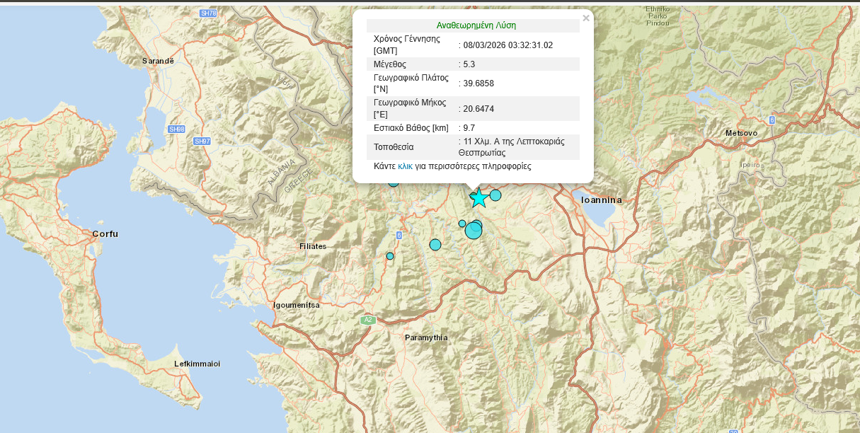Την ίδια ώρα, ζημιές καταγράφηκαν και σε γειτονικές περιοχές. Τουλάχιστον έξι κατοικίες στα χωριά Πεδινή, Λαλιζα Ιωαννίνων και Πολύδροσο Θεσπρωτίας εμφανίζουν ρωγμές, προκαλώντας ανησυχία στους κατοίκους.